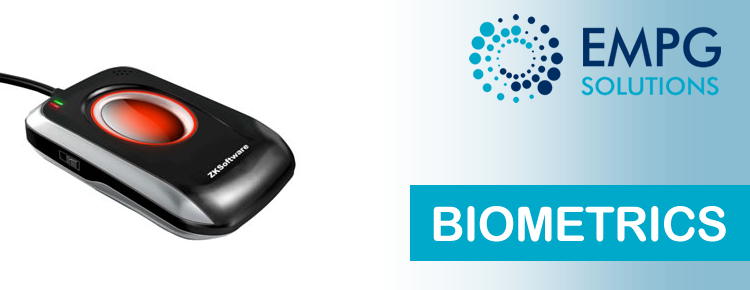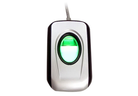 simplemente su dedo es escaneado por un scanner biométrico de huellas.